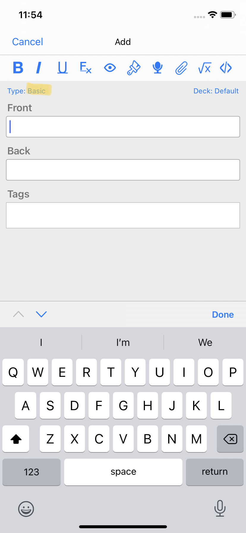 If you want to show the original word on the front side of the default Anki card, type “Front” in the “Word field”. To add translation results on the backside of the card, type “Back” in the “Translations field”. If you want to find field names in your deck, go to the selected deck and press the Add button at the top of the screen. Check the images below to find out how to find the names of the fields for your card configuration.